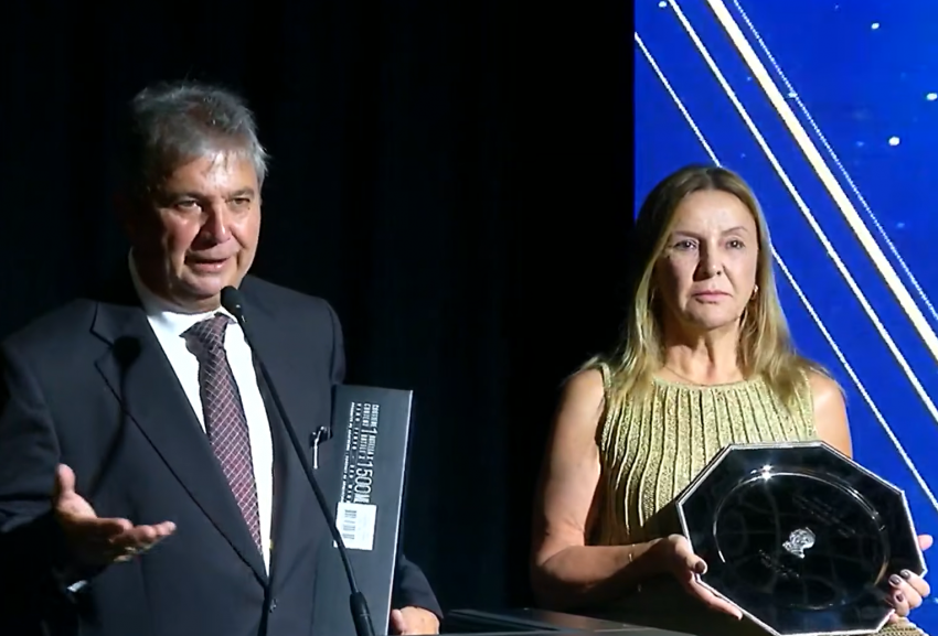 Paulo e Sirlei Pelanda recebem os prêmios dedicados à Obataye - o Cavalo do Ano, na Argentina.
