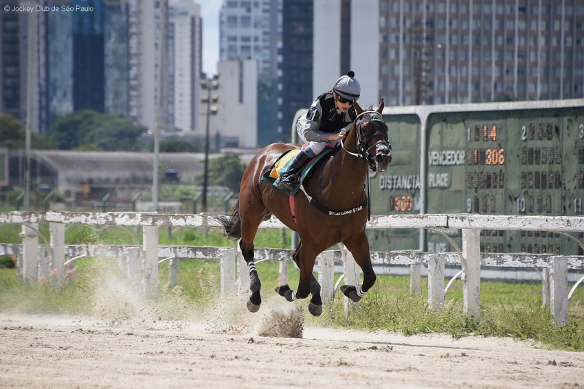 Neste sábado (4), em Cidade Jardim, produtos de 2 anos disputaram o Clássico Presidente Eduardo da Rocha Azevedo (L), em 1.300m na raia de areia (macia). Nova vitória, nesse tipo de raia, para Índia Paraguaya, filha de War Secretary e Cerveza Tiger (Tiger Heart), de criação do Haras Ponta Porã e propriedade de Theo Pioli Trevisani.